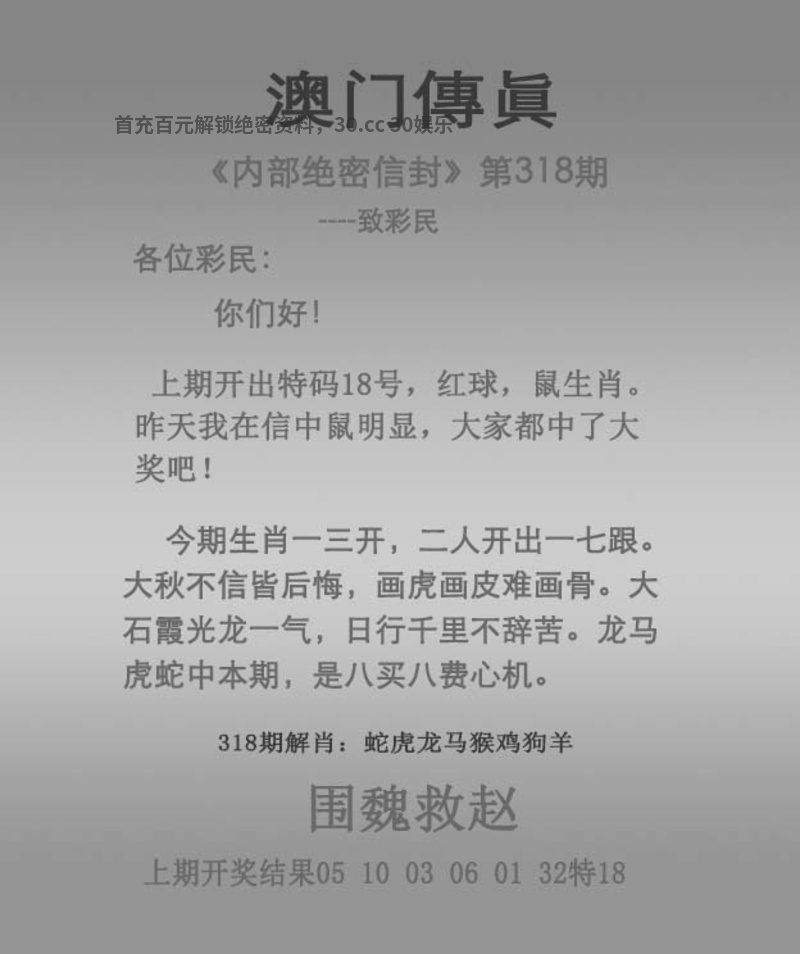 | 319期:独解传真 解:更新中 送:更新中 抓住一句解必中特 |